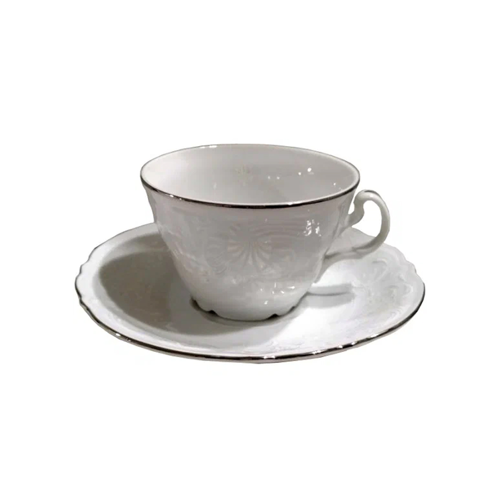 Деколь, отводка платина : Чашка с блюдцем 200 мл, блюдце 155 мм, коническая выс., Bernadotte; декор «Деколь, отводка платина»