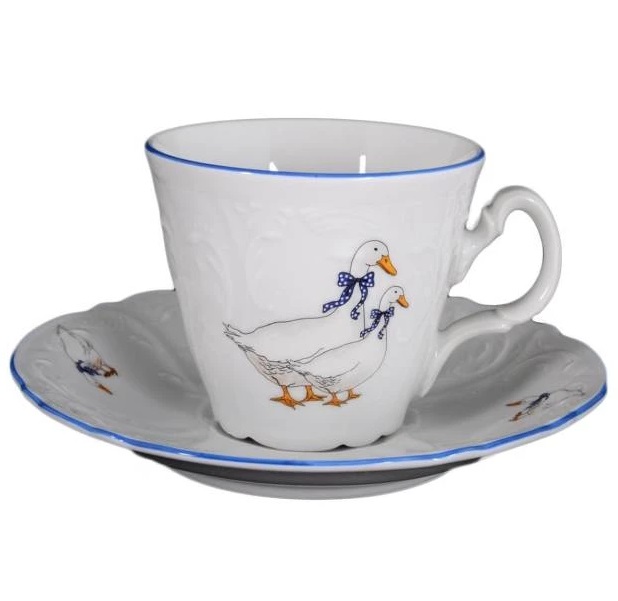 Декор "Гуси" : Чашка с блюдцем 220 мл, блюдце 155 мм, коническая высокая, Bernadotte; декор «Гуси»