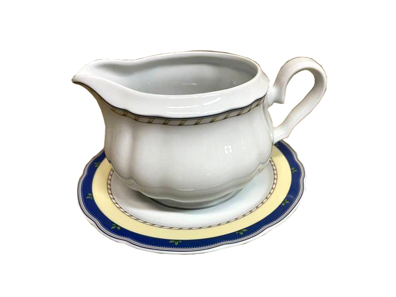 Соусник с подставкой 0,5 л «Роза»; декор «Мелкие ягоды на бледно-желтом фоне»